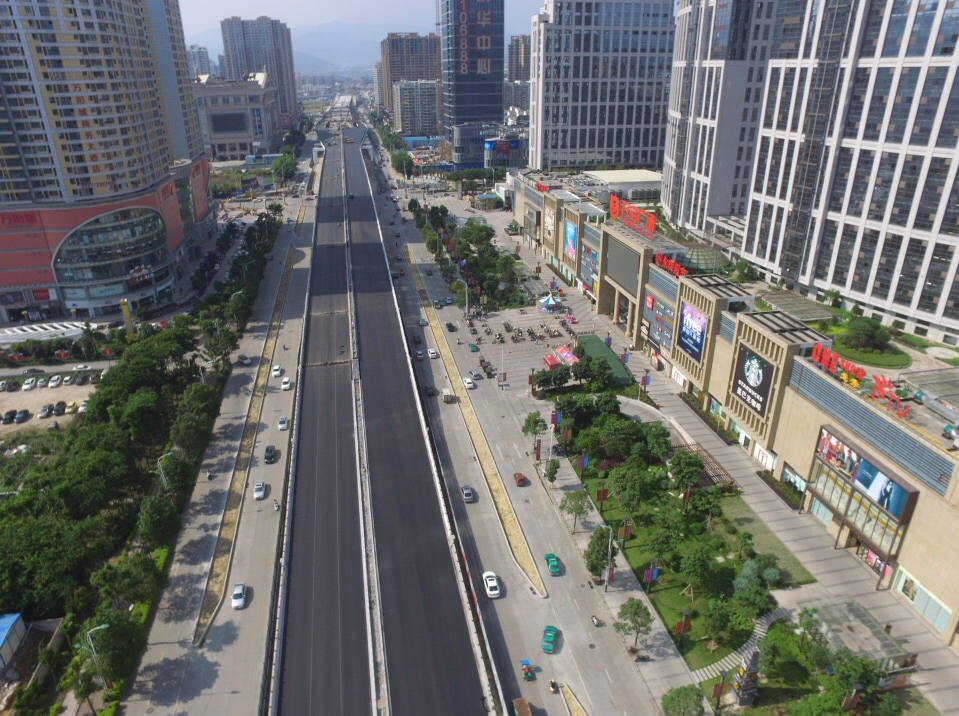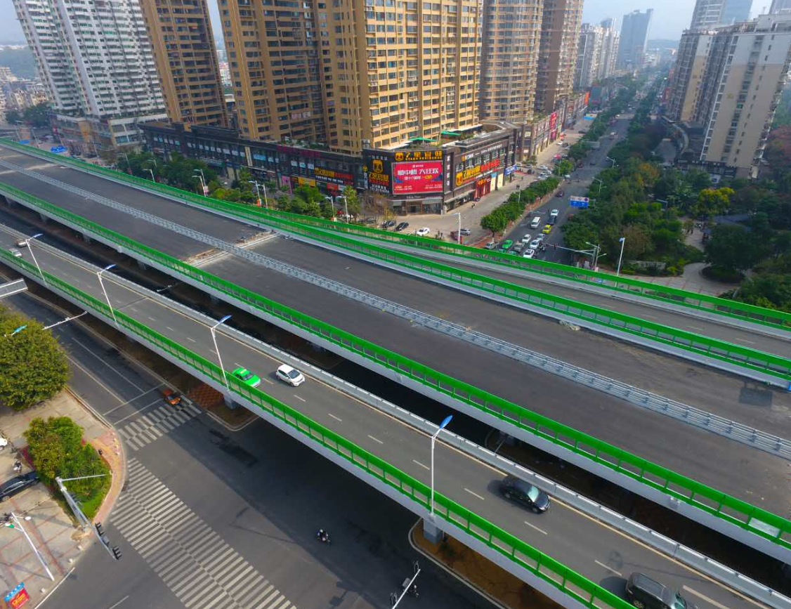 龍巖大道高架橋項目為省、市重點建設(shè)項目,是龍巖中心城市連接南北、溝通新老城區(qū)的重要樞紐,項目位于龍巖市南北交通中心軸和景觀軸線龍巖大道上,全長3395m,包含橋梁和地面道路兩大部分,其中橋梁工程總長2329m,橋?qū)?6m,包含一座190+150m獨塔斜拉索鋼箱梁主橋(主橋?qū)?6.3m),全線設(shè)計為雙向六車道,設(shè)計車速60km/h,在西陂路及人民路處各設(shè)置上下匝道,跨越雙洋路、羅龍東路、人民路、登高西路、西陂路城市主干道,項目總投資約24億元。