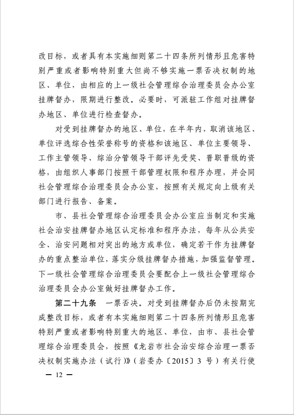 龍巖市健全落實社會治安綜合治理領導責任制實施細則(巖委辦發【2017】11號)