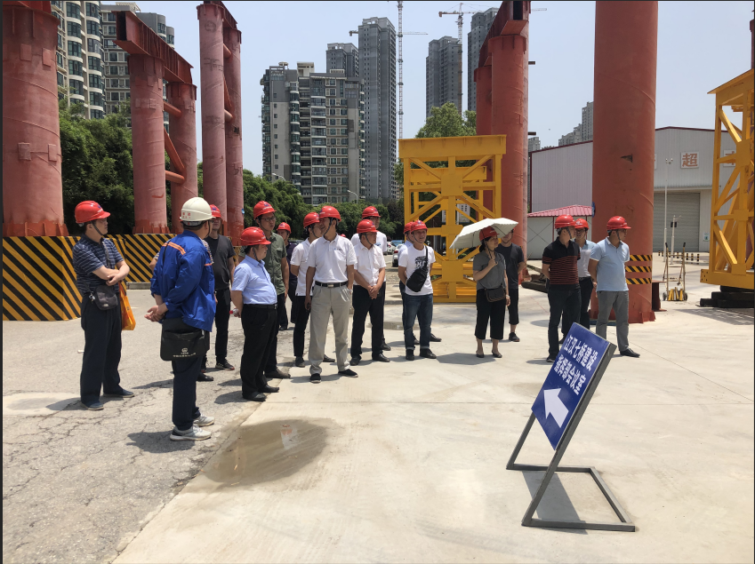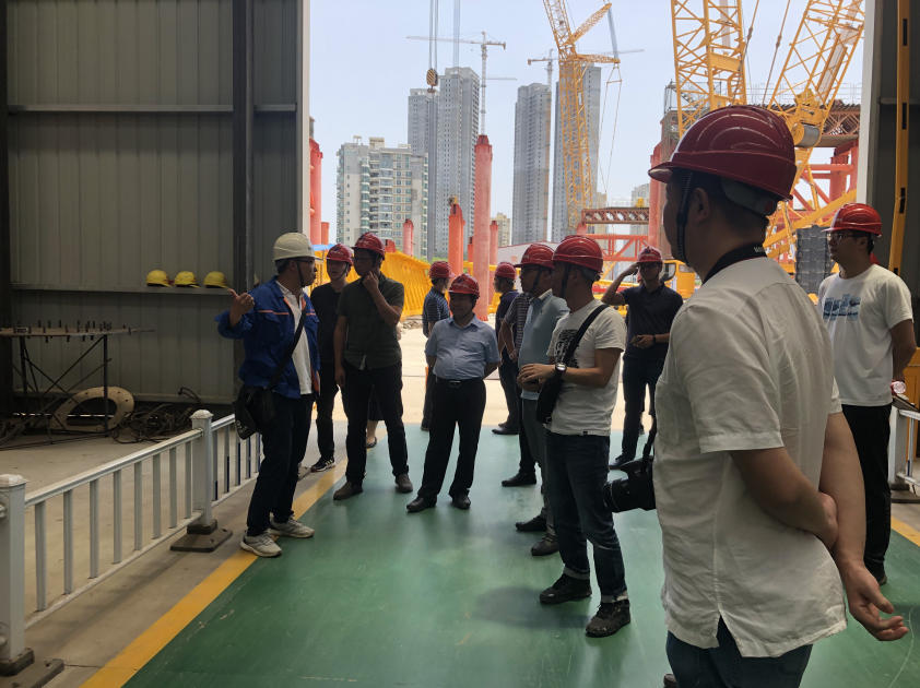 在考察學習期間,考察人員首先前往第一站中鐵大橋局七公司楊泗港青菱段斜拉橋工程項目,該項目負責人李斌帶領我司考察學習人員深入楊泗港大橋主塔施工現場,參觀了該項目的主塔工程,項目負責人向大家詳細介紹了該項目的工程建設情況,該工程臨近鐵路,工程進度任務極重,施工組織及施工技術要求高、施工難度大,并就相關問題與大家進行了現場交流。