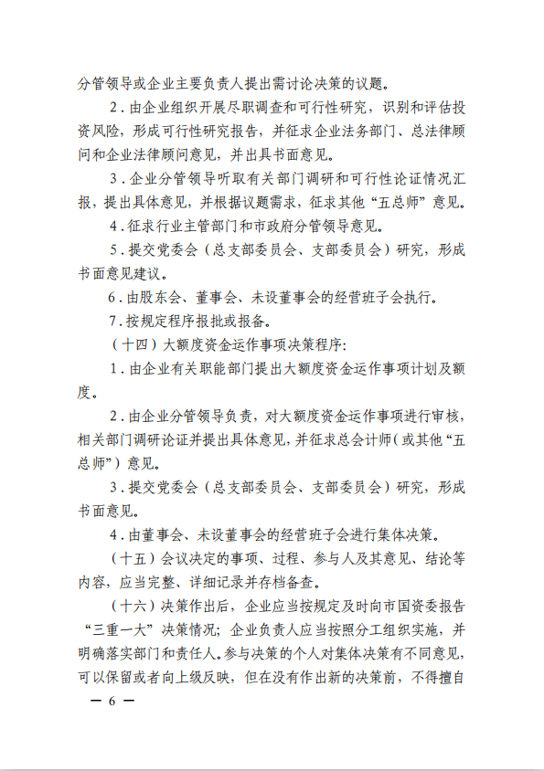 關于進一步規范市屬國有企業貫徹落實“三重一大”決策制度實施意見(國資黨委[2020]21號)